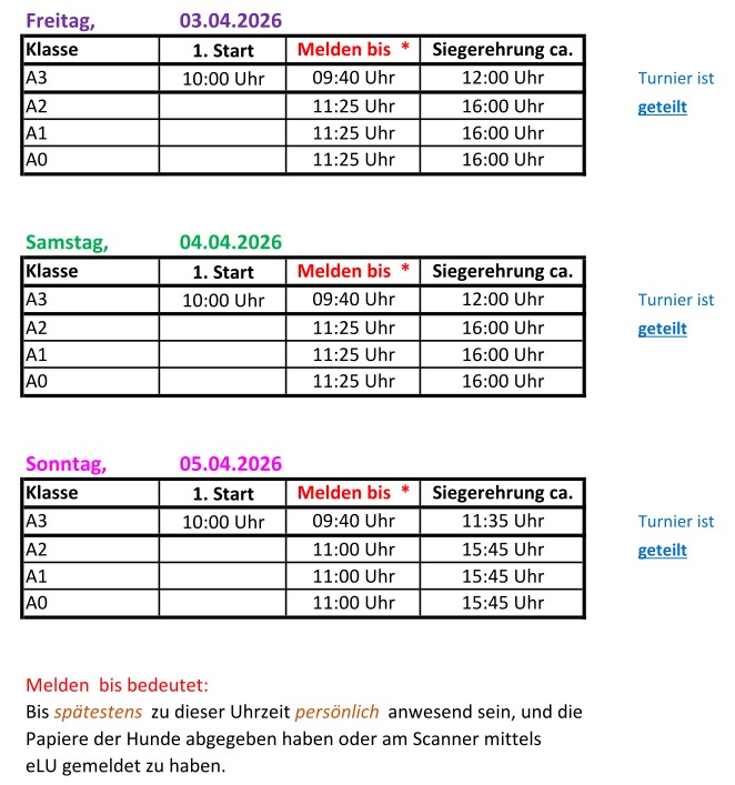 - Es gilt auch für die Turniere die Hallenordnung der Hundesporthalle Riedstadt, sowie die AGB.